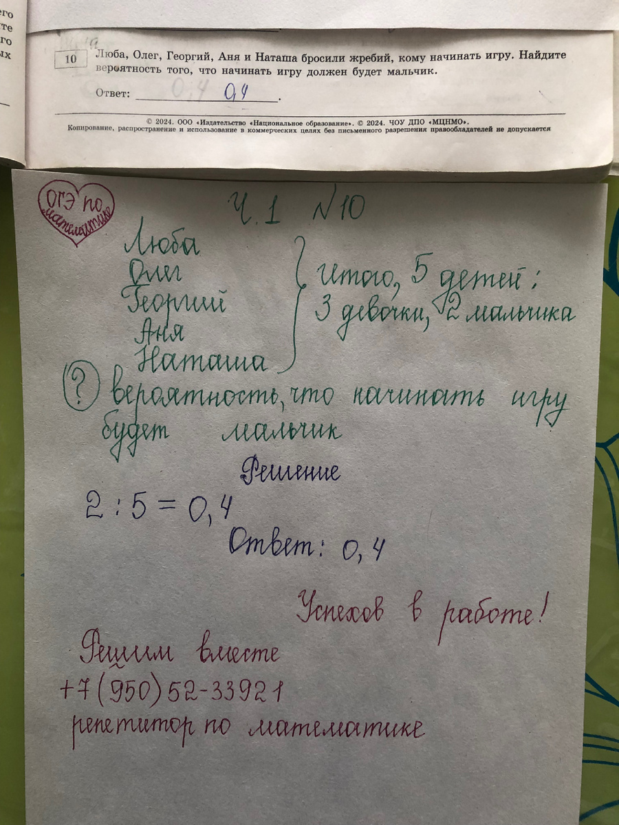 ОГЭ по математике: найти вероятность, что игру начнет мальчик (ч. 1 номер 10)