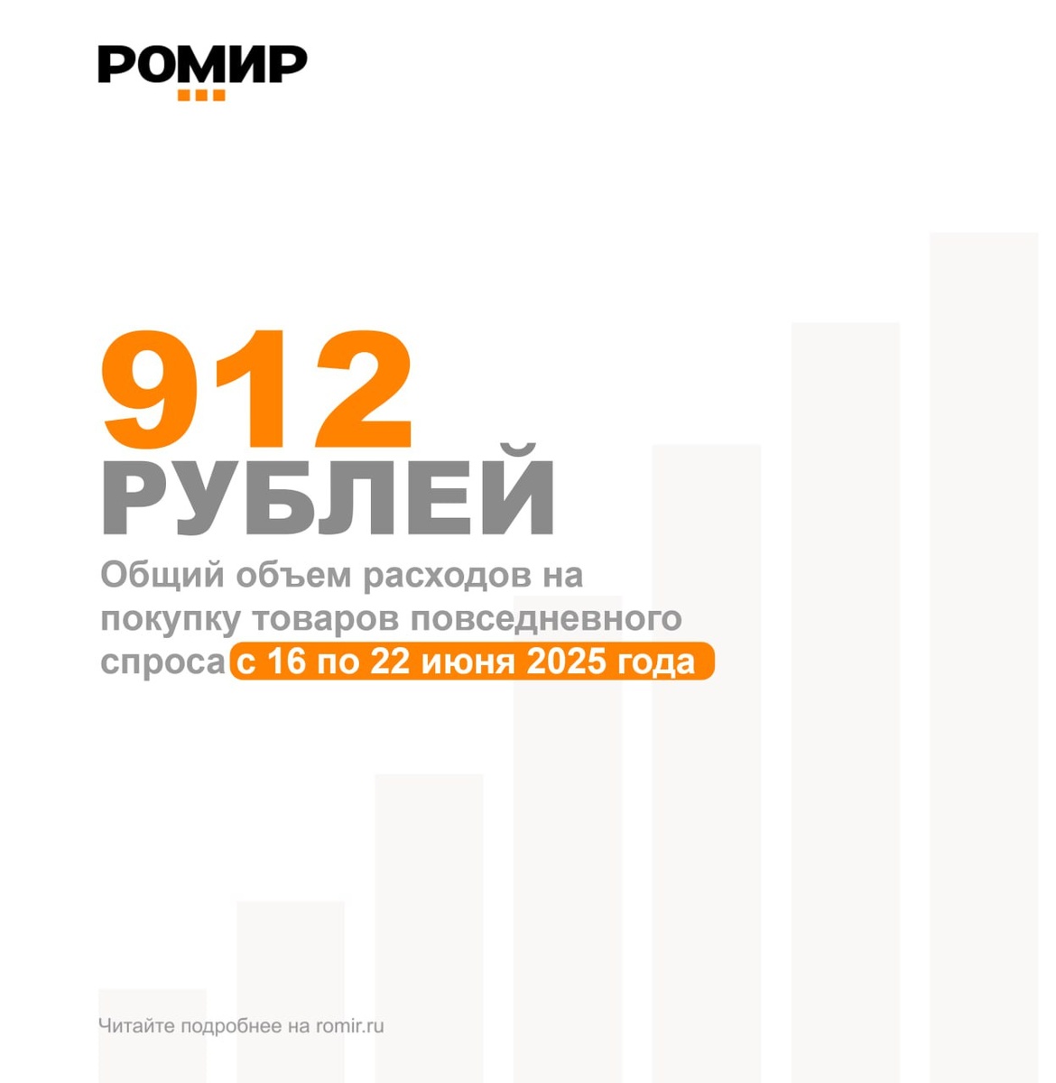 912 рублей составил размер среднего чека на прошедшей неделе со 16 по 22 июня