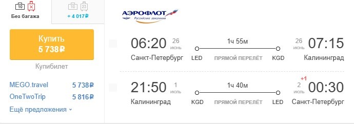✈️Санкт-Петербург - Калининград, туда и обратно за 5750 рублей