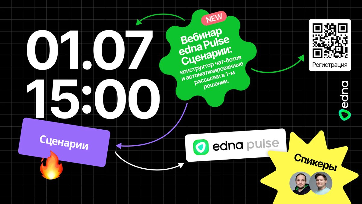 edna Pulse Сценарии: конструктор чат-ботов и автоматизированные рассылки в одном решении, вебинар 01.07 в 15:00