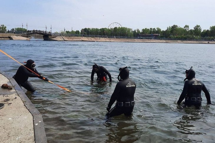Со дна Ангары подняли несколько десятков килограммов мусора. Среди находок скейтборд, весло, бочка, несколько детских самокатов, шестиметровая арматура, ножи, телефон. Самый тяжелый предмет — чугунная урна, ее доставали четыре человека.