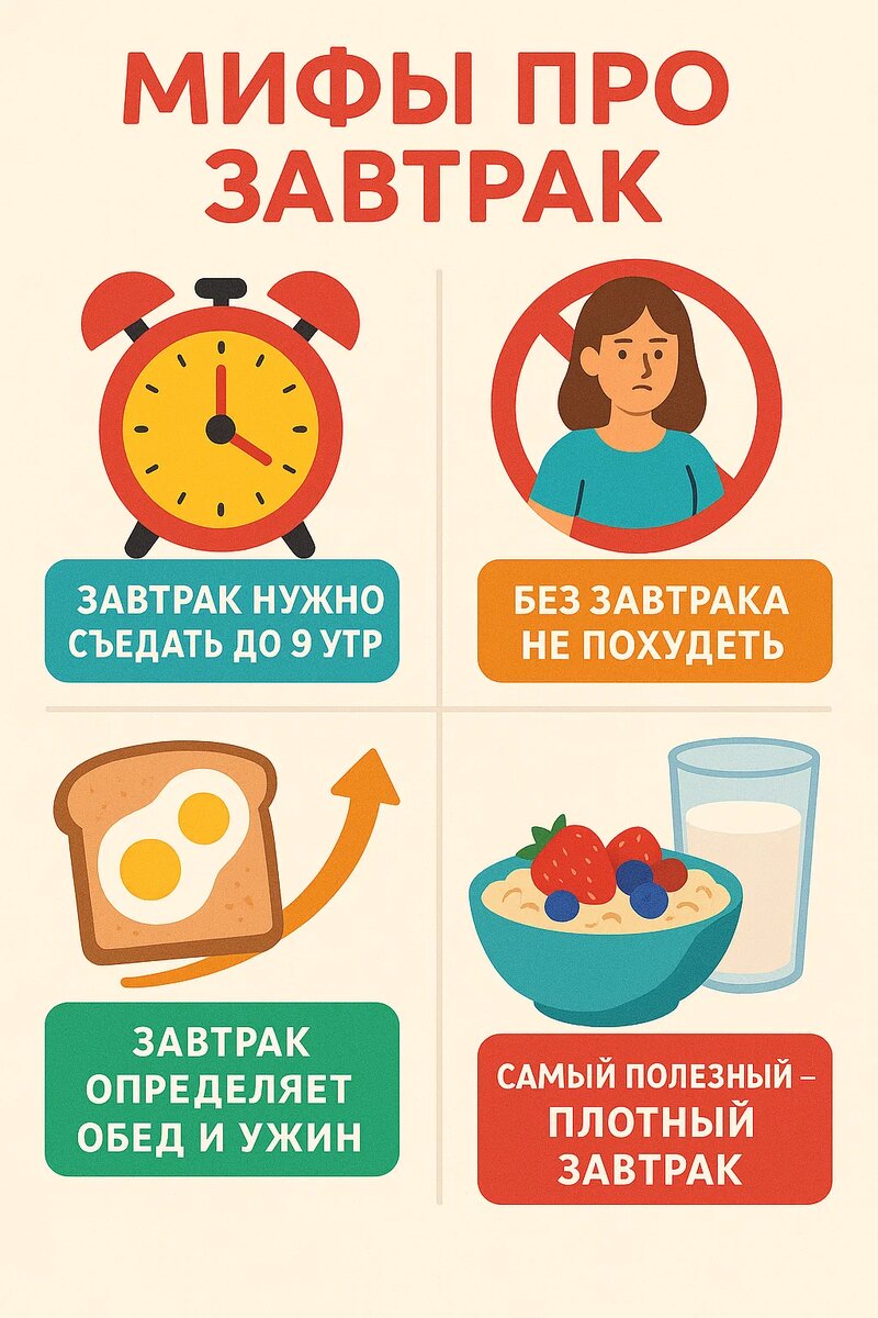 Мы часто слышим, что завтрак — самый важный приём пищи. Но что говорит современная медицина? Разбираем мифы и факты — с научной точки зрения. ✅ Что говорят исследования? 1️⃣ Завтрак и метаболизм: разгоняет или нет? По мнению Гарвардской медицинской школы, метаболизм не зависит от того, завтракаете ли вы. Главное — общее количество калорий в сутки. Значит ли это, что отказ от завтрака помогает похудеть? Не всегда. 2️⃣ Завтрак и здоровье сердца Исследование с участием 26 902 мужчин показало: отсутствие завтрака связано с повышенным риском инфаркта (выявлено, что у тех, кто не завтракает, риск инфаркта и внезапной смерти выше на 27%). Но причина — в вечернем переедании. Это важно учитывать тем, кто следит за сердечно-сосудистым здоровьем. 3️⃣ Завтрак и контроль аппетита В исследовании, опубликованном в American Journal of Clinical Nutrition, говориться о том, что завтрак с высоким содержанием белка уменьшает количество перекусов в течении дня и снижает общее количество калорий. 4️⃣ Помога