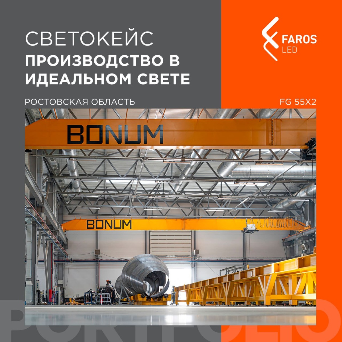 ⚡️ Кейс FAROS LED: Производство в идеальном свете 🔥 FAROS LED осветил завод Бонум Траст, Ростовская область. Это новое масштабное российское производство автомобильных полуприцепов-цистерн полного цикла. 💫 Перед специалистами FAROS LED стояла задача обеспечить равномерное, энергоэффективное и долговечное освещение производственных помещений, соответствующее нормам безопасности и комфорта для постоянного пребывания рабочих на территории завода. 👉 В цехах завода установлены промышленные пылевлагозащищённые светильники серии FG 55x2, которые обладают: • Сдвоенной конструкцией, обеспечивающей максимальный уровень энергоэффективности (до 147 лм/Вт) • Простым быстрым монтажом на поворотный кронштейн • Степенью защиты IP65, которая гарантирует надежную многолетнюю работу изделий в сложных производственных условиях • Гарантией 5 лет 💡 Наружная территория освещена FP 150 - консольным линзованным светильником. Светильник имеет степень защиты IP66, которая обеспечивает стойкость изделия к