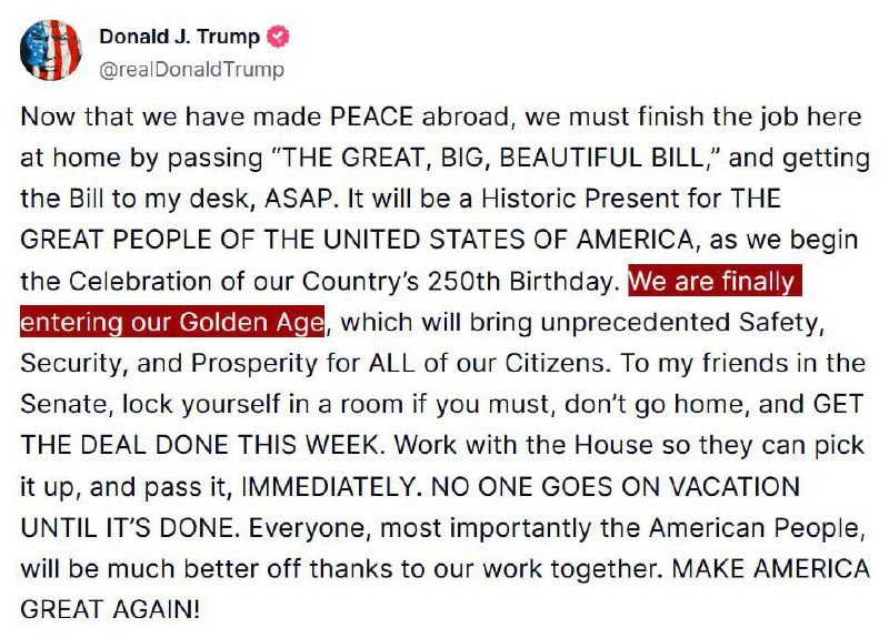 Трамп: «Мы наконец-то вступаем в наш Золотой Век».