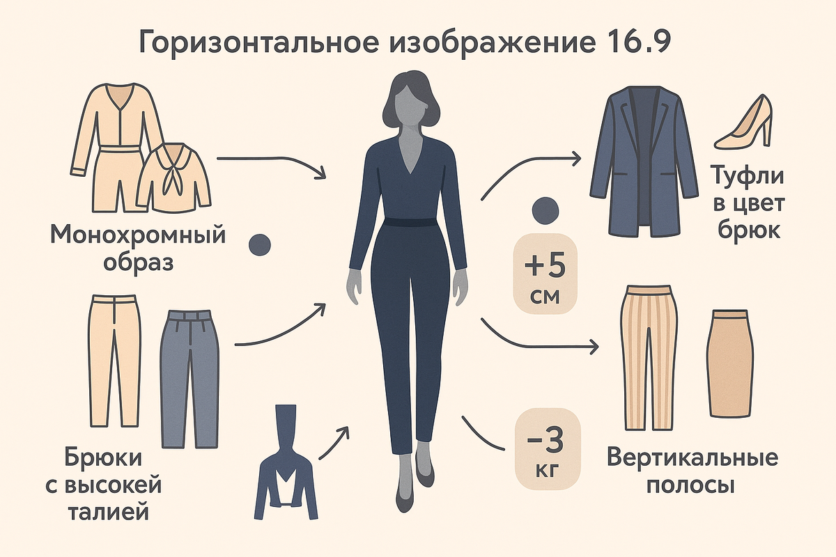 Удивительно, но одежда — это не просто вторая кожа. Это магия, способная менять пропорции, настроение, самоощущение. Иногда достаточно пары приёмов, чтобы добавить себе несколько сантиметров роста — и минус пару килограммов, чисто визуально! Правильно подобранный образ способен сделать талию тоньше, ноги длиннее, а силуэт — легче. Это не обман и не чудо — а грамотная игра линий, фактур, цвета и пропорций. Секрет? Всё просто: чуть-чуть знаний, немного смелости — и капля вкуса! Образ в одном цвете (например, полностью бежевый или синий) вытягивает силуэт, делает его стройнее. Контрасты «режут» рост — монохром объединяет. Всё, что создаёт вертикаль — длинные украшения, удлинённые кардиганы, пальто, шарфы, вертикальные застёжки и планки — добавляет роста и стройности. Юбки и брюки с завышенной талией удлиняют ноги, подчёркивают талию. Такой вырез «открывает» шею, визуально вытягивает линию корпуса. Лёгкие, струящиеся ткани не добавляют объёма, в отличие от тяжёлых и фактурных. Лаконичные,