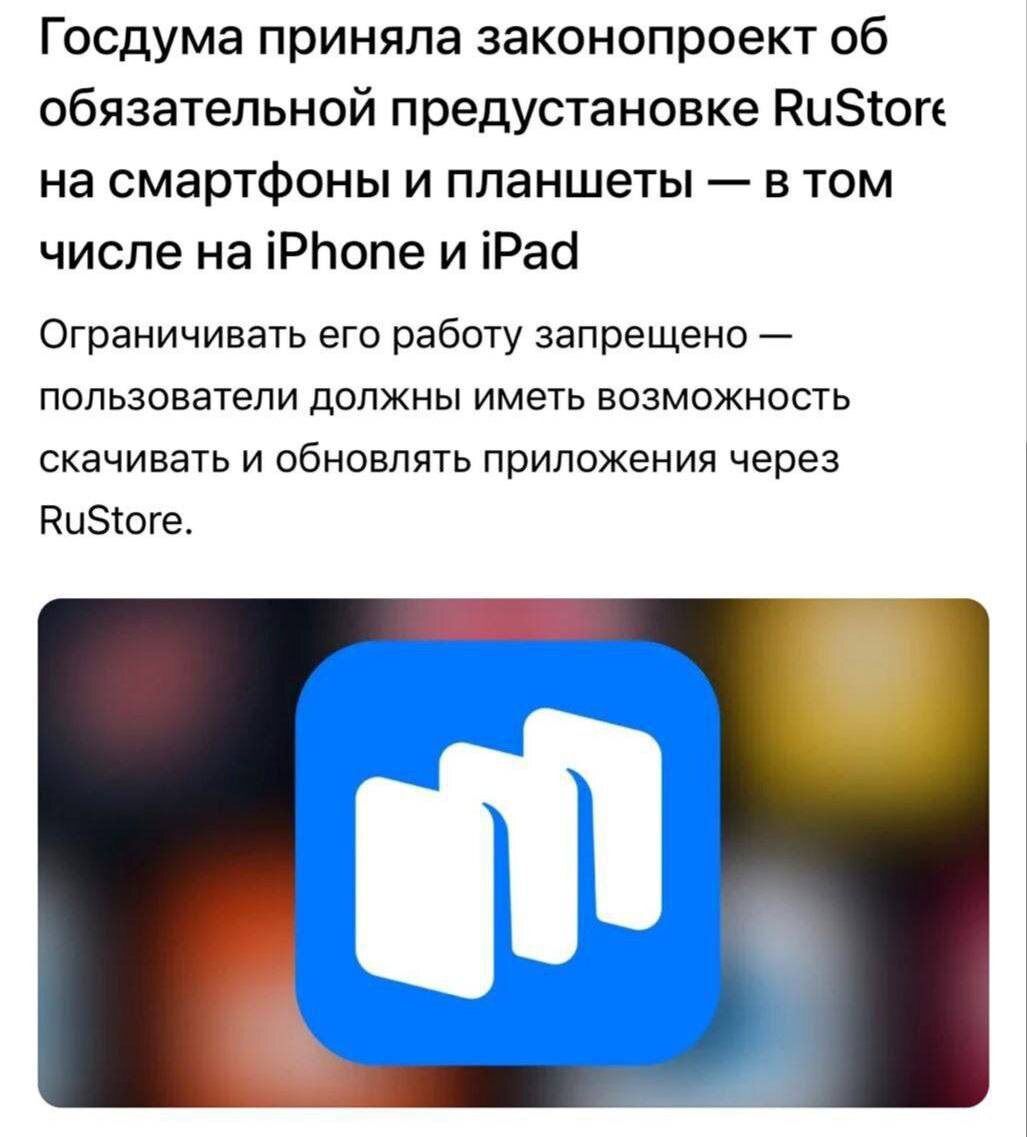 Apple в России обяжут предустанавливать RuStore на все смартфоны и планшеты.