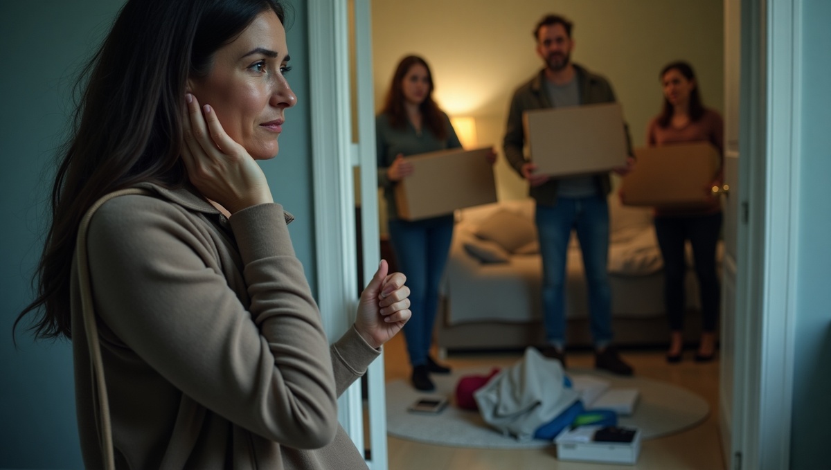 Я, дрожа, раскладываю вещи по коридору, вижу перемешанные туфли, свои детские фото на полке рядом с какими-то чужими квитанциями… — Это кошмар, это сон… Нет, это мои документы! Вы зачем это всё трогали?!