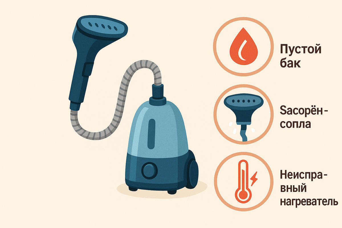 — Купил отпариватель, пользовался с удовольствием… а тут — бац! — и пара нет. Пытаешься снова и снова, но результат один: вода есть, а гладишь почти всухую. Знакомо? Мне, Кононову Андрею Фёдоровичу, такие жалобы встречаются каждую неделю. Но не спеши расстраиваться — в большинстве случаев всё решается быстро, если знаешь, что искать. Отпариватель перестал выдавать пар по одной из трёх причин: 1. Проблема с водой — пустой бак или плохо закрыта крышка. 2. Засорились отверстия для выхода пара. 3. Сломался или загрязнился нагревательный элемент. Иногда встречается и «комбо» — несколько причин сразу. — Начни с простого. Проверь, есть ли вода в баке. Звучит банально, но иногда уровень низкий — пар не идёт. Проверь, плотно ли установлена крышка и стоит ли бак ровно. Некоторые модели не начнут работать, если резервуар плохо зафиксирован. Посмотри, не протекает ли бак, нет ли трещин или течи в соединениях. — А вот тут уже нужна внимательность. Отверстия для выхода пара забиваются накипью или м