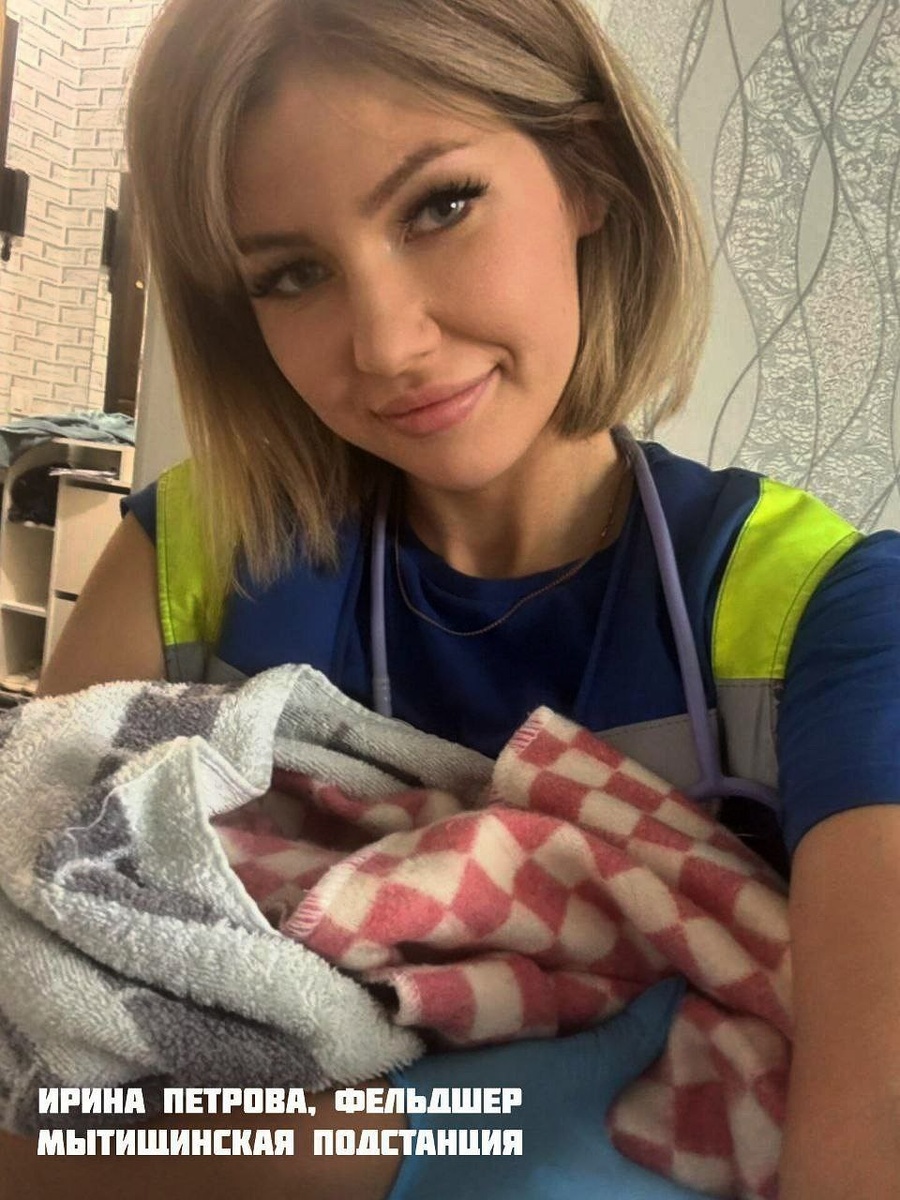 В Мытищах фельдшер скорой помощи Ирина Петрова помогла родиться ребенку прямо в квартире На станцию скорой помощи поступил вызов к 37-летней женщине с поводом «роды, кровотечение». По прибытии на место выяснилось, что у роженицы начались частые схватки и потуги. Времени не было и фельдшер решила принять роды на дому, с последующей эвакуацией в стационар. На свет появилась доношенная, здоровая девочка, весом 3500 граммов.