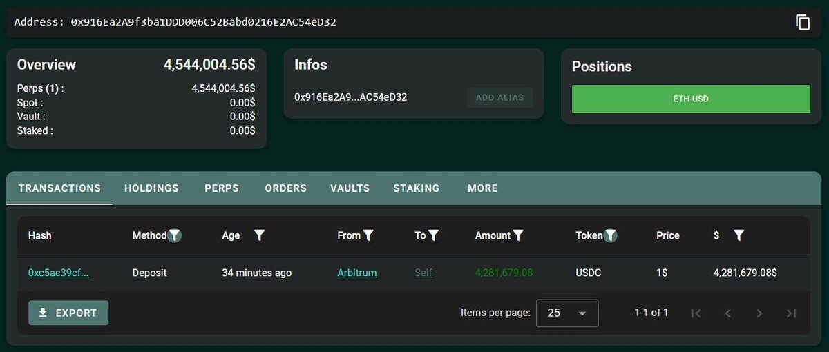 🚀 Big moves in the crypto game! A major player just dropped $4.28M in USDC on HyperLiquid and opened a whopping $101M long on ETH with 25x