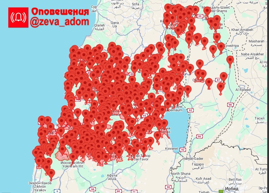 Ракетный обстрел (10:31) Иран нарушил режим прекращения огня • Вади Ара • Ха-Мифрац • Верхняя Галилея • Ха-Амаким • Центральная Галилея • Ха-Кармель • Линия противостояния • Нижняя Галилея • Северный Голан • Южный Голан