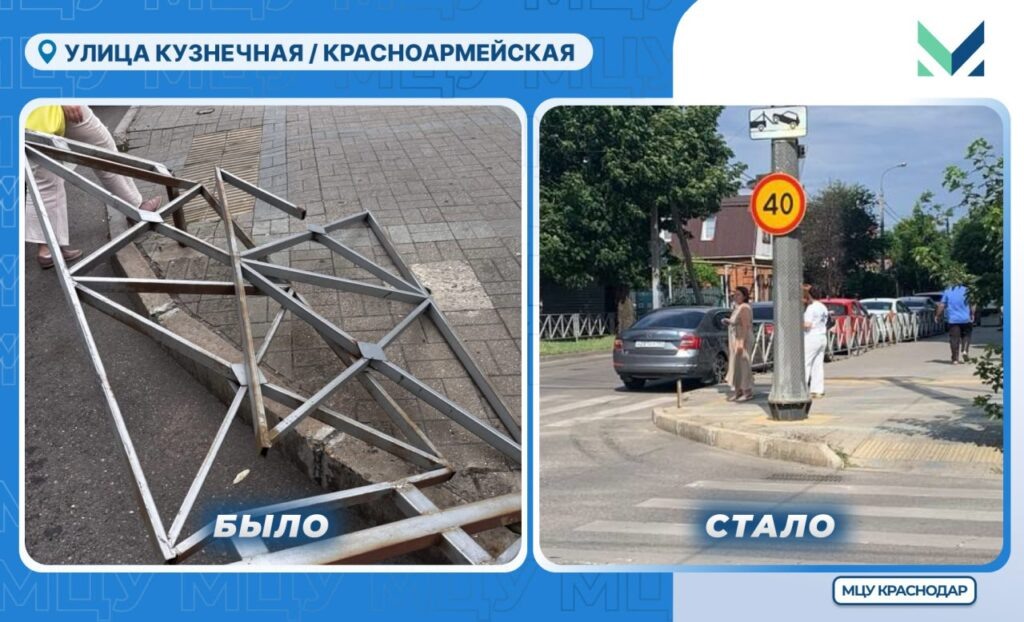 В Краснодаре на пересечении улиц Кузнечной и Красноармейской демонтировали аварийные пешеходные ограждения. Об этом сообщили в Муниципальном центре управления города. По словам представителей центра, к ним поступило обращение от жителей с просьбой убрать повреждённые конструкции. Информация была направлена в департамент транспорта и дорожного хозяйства. Специалисты оперативно отреагировали и выполнили демонтаж.