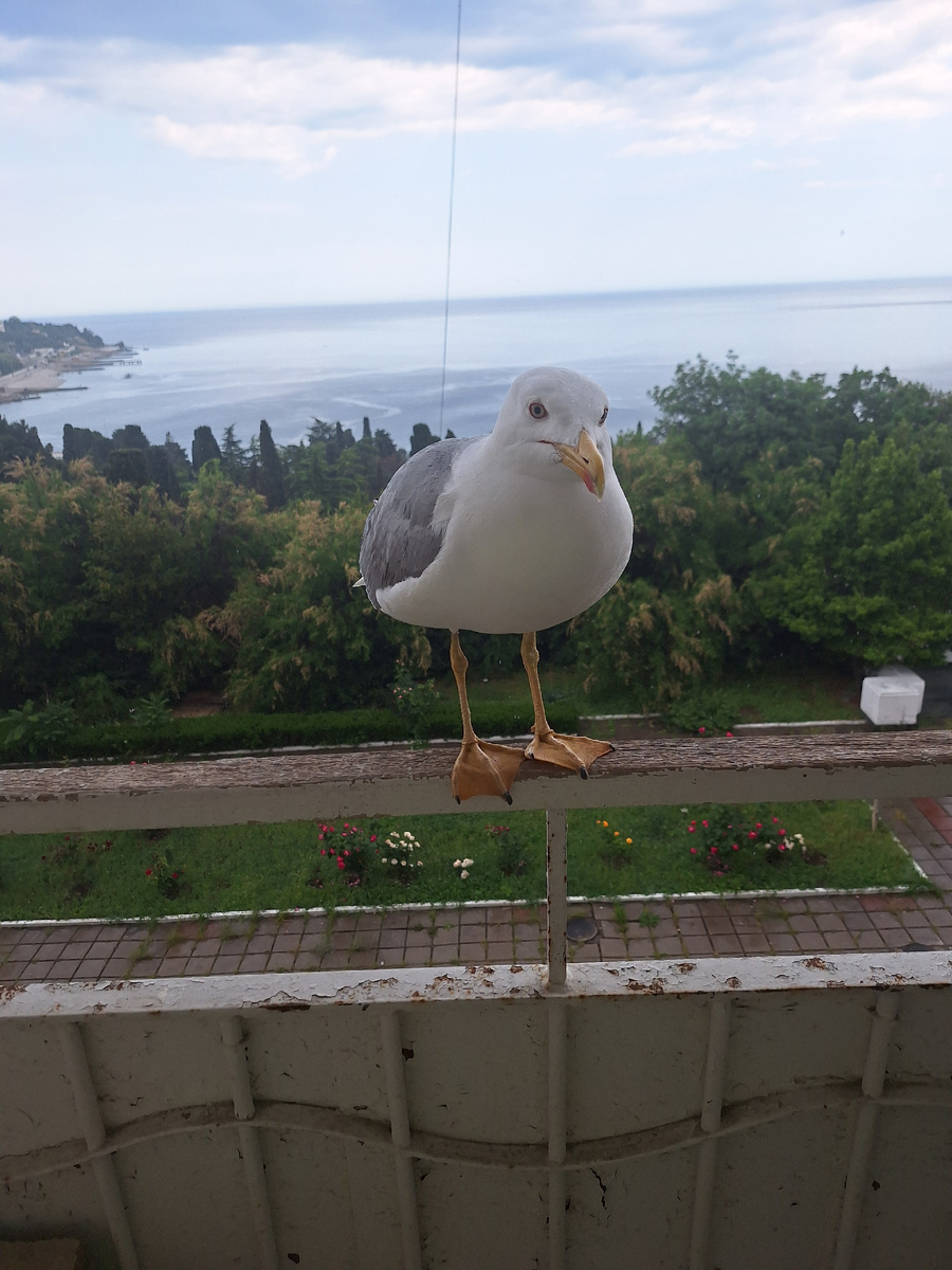 Утром меня разбудил вот этот "товарищ", который громким криком требовал чего- то вкусного. Ему было отказано, но наглая птица не собиралась улетать. За свою настойчивость чайка все- таки выпросила у меня булочку. Ела с рук. Не пугливая. Сегодня я созвонилась со своими знакомыми и мы решили поехать в одно очень необычное место. Поездка планировалась ближе к вечеру, поэтому я воспользовалась свободным днем и посетила пляж. Вода стала прогреваться и я даже пару раз окунулась. Ближе к 16.00 за мной приехали девчонки и мы отправились в наше маленькое путешествие в Балаклаву. По дороге сделали небольшую остановку возле "Крымского санторини". Это фото- локация расположенная по трассе Ялта- Севастополь, недалеко от Фороса. Белые стены с синими крышами, цветы, лазурное море, горы. Красивые пейзажи словно погружают в атмосферу Греции. Ресторан пока не работает, но это не мешало нам остановиться и сделать несколько шикарных снимков. Следующей нашей остановкой была Балаклав