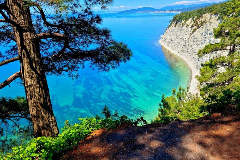 «Голубая бездна» - это затерянная среди соснового бора площадка для кемпинга у обрыва перед морем. От кемпинга вниз спускаются несколько узких тропинок к морю. Внизу Вас ждет чистый, малолюдный дикий пляж с чистейшим морем невероятного сапфирово-голубого цвета. Людям со слабой физической подготовкой или лишним весом 100% будет тяжело преодолеть спуск к пляжу, а тем более обратный подъём, но если постараться и быть максимально внимательным и стойким — у Вас все получится! Добираться до этого живописного места можно как самостоятельно, так и в составе организованной группы. Маршрут частично проходит по старой Щербиновской дороге, частично по лесным тропам. Также сюда можно добраться на квадроциклах и мотоциклах класса Эндуро. Начало самого оптимального маршрута проходит по трассе в сторону Дивноморска, примерно через километр после вывески Джанхот Вы увидите съезд с трассы в сторону моря со шлагбаумом. Здесь Вам нужно повернуть на эту грунтовую дорогу и далее следовать указателям на дере
