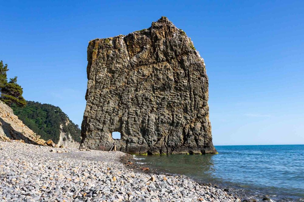 Скала «Парус» находится в недалеко от села Прасковеевка и хутора Джанхот. Увидеть скалу можно, если пройти около полукилометра по берегу от пляжа Прасковеевки или около 5 километров по дикому пляжу от пансионата Джанхот. Скала представляет собой уцелевший пласт песчаника. Много тысяч лет назад во время заполнения современного Черного моря на сушу наступало море. Под этим водным натиском многие прибрежные скальные массивы разрушались, превращаясь в гальку, камни и глину. Этот пласт уцелел благодаря своей прочности. Совершенно случайно природа высекла скалу в форму, похожую на парус, за что скала и получила своё название. В скале есть небольшое отверстие, похожее на окошко. Точное происхождение его не ясно, но при осмотре краеведами и историками была вынесена версия, что отверстие появилось в результате обстрела из броненосца. Высота скалы Парус — около 25 метров, ширина – около 20 метров, толщина – около 1 метра, удаленность от берега – 10 метров. Скала признана природным памятником, по
