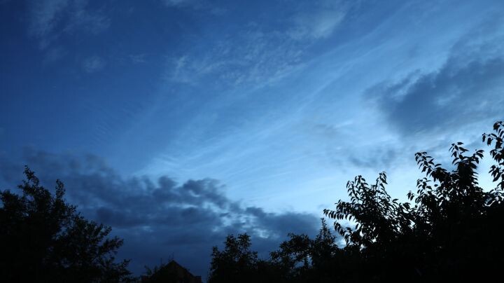 В астраханском Ахтубинске запечатлели серебристые облака вчера вечером