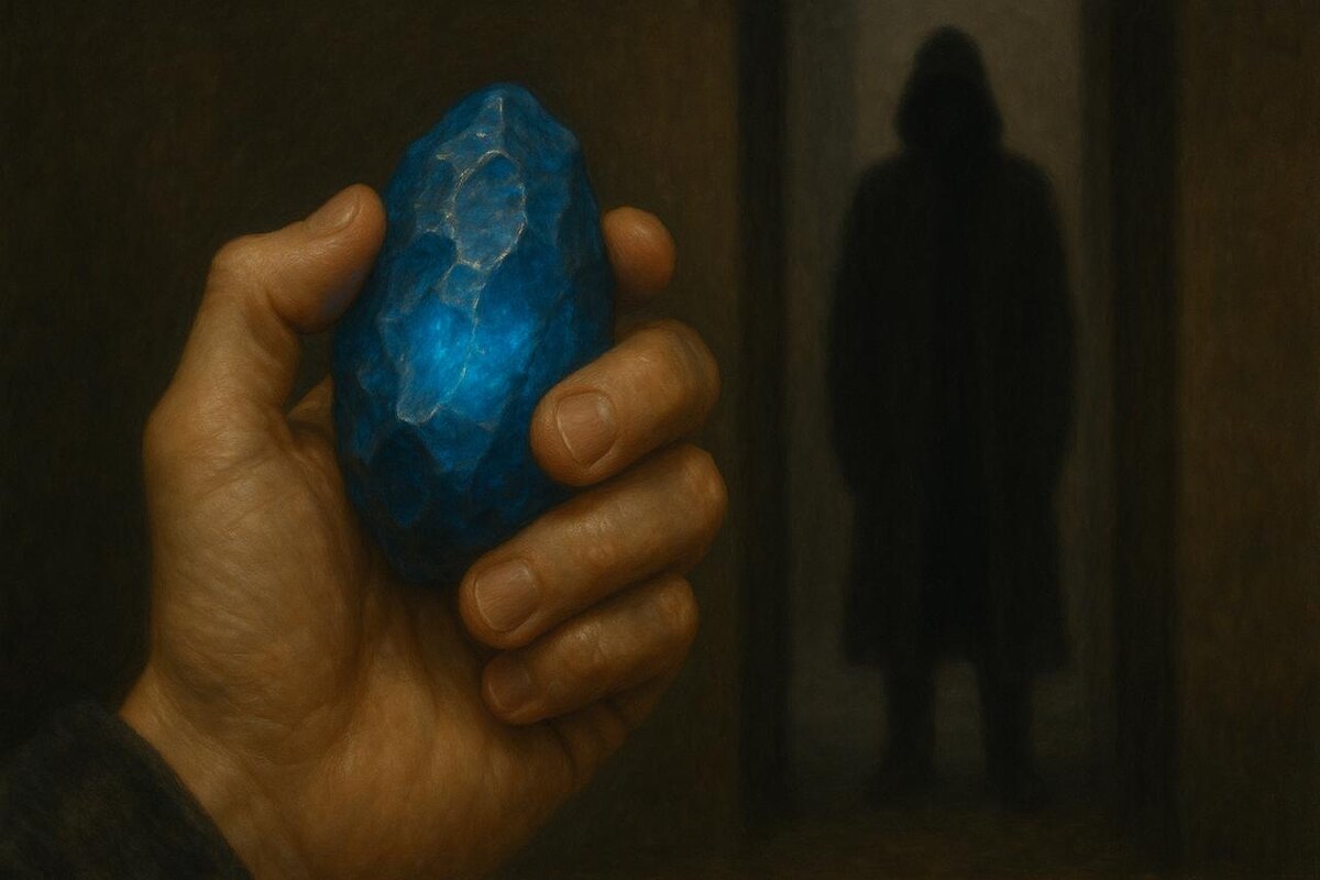 Это был маленький, тщательно отполированный камень. Не земной. Он переливался странным, глубоким синим светом изнутри, как кусочек ночного неба. И на ощупь был... теплым. К камню был прикреплен крошечный, сложенный треугольником клочок бумаги. Дрожащими руками Егор развернул его. Надпись, выведенная аккуратным, безличным почерком: