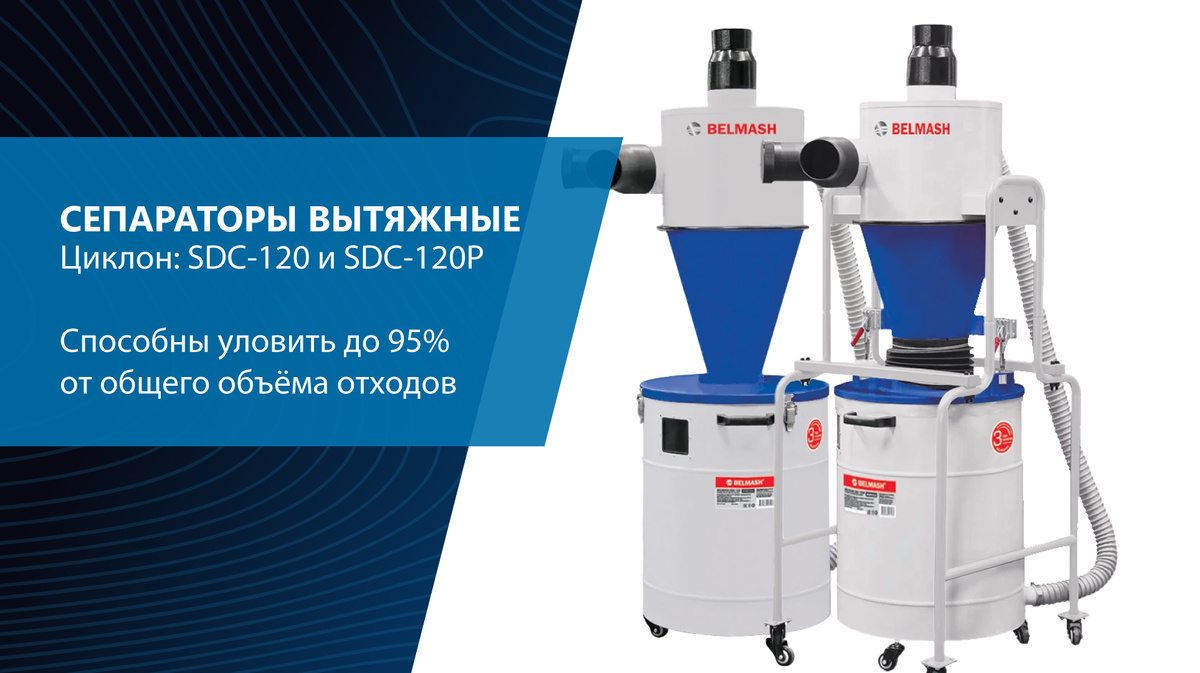 Представляем две новинки, предназначенные именно для сбора и разделения стружки - сепараторы BELMASH SDC-120P и SDC-120. Это циклонные сепараторы, которые удобно использовать в качестве первой ступени фильтрации для деревообрабатывающих станков. Например, фуговальных, рейсмусных или пильных. Каких-то ограничений тут нет – подключить сепаратор можно к любому станку, но оптимальнее использовать его именно с наиболее «стружкопроизводящими» моделями из числа имеющихся в конкретной мастерской или цехе.