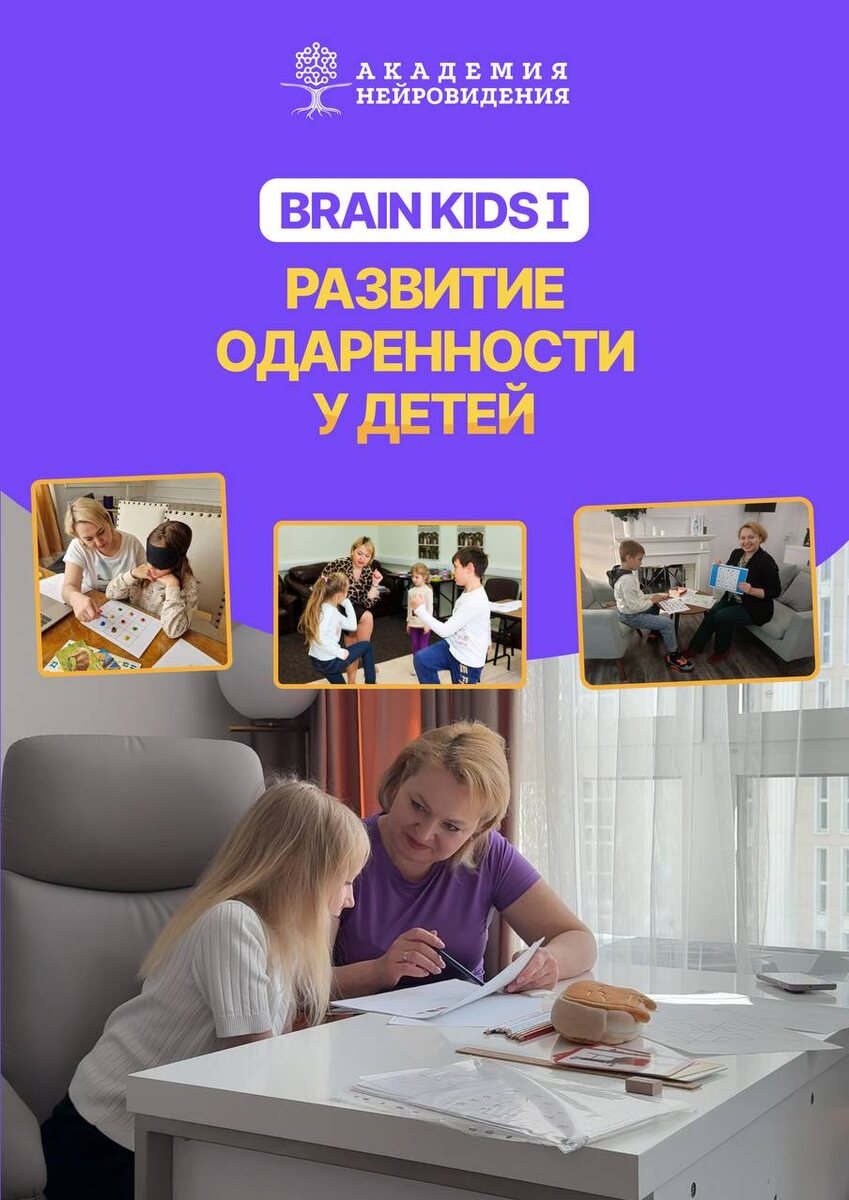 Развитие одаренности у детей 💜 Чуть больше 30 лет назад я начала работать в психологическом центре помощником педагога, куда на занятия приехал папа с ребенком, у которого были проблемы со зрением, точнее он был абсолютно слепым. Он ходил вдоль стены и ни с кем не общался. У меня всегда был хороший контакт с детьми, мы легко нашли общий язык. И я с большим желанием проводила занятия и отрабатывала упражнения по программе. Спустя менее пол года я заметила улучшения в ребенке, это меня вдохновило на дальнейшее обучение по специальности социальный работник. В дальнейшем получила второе образование клинический психолог (нейро-, пато-психолог) МГУ им. Ломоносова. В настоящее время провожу развивающие занятия по одаренности, по развитию интеллекта, памяти и внимания, скорости восприятия и мышления, улучшение зрения, координации и др.