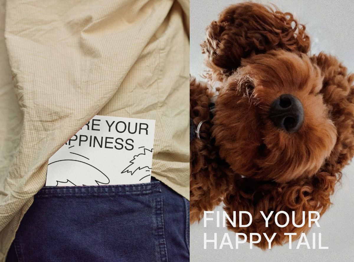 Затем, передо мной стояла задача — как передать ту особую, искреннюю связь между человеком и собакой, которая делает жизнь каждого из них теплее? Я могла пойти простым путем — использовать изображения счастливых питомцев или присущие им атрибуты. Но вместо этого я задумалась: а что действительно является самым искренним проявлением собачьих эмоций? Ответ пришёл сам собой — хвост.