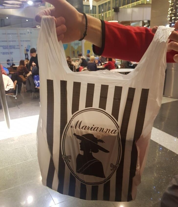 У каждой постсоветской женщины был такой пакет. Относились к нему как к сокровищу — бережно носили, аккуратно складывали, а если он рвался, то чинили, заклеивая дырки или связывая порванные ручки узелками. Некоторые умудрялись стирать его, чтобы продлить жизнь этому полиэтиленовому "аксессуару роскоши". Речь, конечно, о легендарном полосатом пакете с силуэтом девушки в изящной шляпке — том самом, который стал настоящим предметом мечтаний женщин постсоветской эпохи и символом стиля 90-хх. История этого феномена началась в 1992 году в репроцентре "Полимербыта", где работала дизайнер Наталия Першукова. Тогда вся страна была покорена мексиканским сериалом "Богатые тоже плачут" — люди отменяли планы, чтобы не пропустить очередную серию и узнать судьбу бедной девушки Марианны, не подозревавшей о своем богатом наследстве. Начальница Першуковой поручила художнице создать дизайн пакета с использованием образа главной героини. На работу отводился всего один час — времени на долгие размышления не