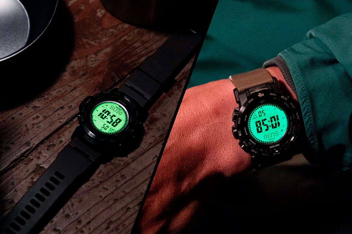 Будучи владельцем черных PRW-35Y-1B, я всегда с интересом смотрю на новых представителей серии. Ранее мы уже писали о новых моделях, которые мельком подсмотрело японское издание, но сегодня хочется более детально остановится на красивых PRW-35LD-5. Если обычно мы акцентируем внимание на новом цвете корпуса, новом типе ремешка и других “мелких” стилистических изменениях, то PRW-35LD-5 нас удивили не только традиционными апйдетами. Да, намекаю на первый у CASIO “фосфоресцирующий LCD-дисплей” (разве такое было раньше?). Логика работы следующая: под цифровым дисплеем находится люминесцентный материал (накопитель), который излучает мягкое зеленое свечение и обеспечивает хорошую читаемость в темноте (книжку не почитаешь, но вот для считывания текущего времени самое то).