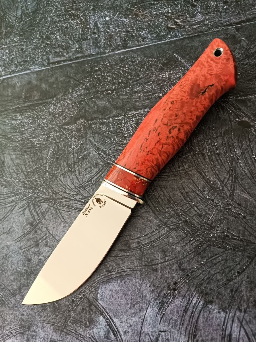 Распродажа ножа в наличии 1 шт.🔪🔥 ❗7. 500₽❗🔪N690 Bohler (62-63 HRC) — нож сбалансирован и эргономичен, идеален в разделке для профессионалов и любителей👌 ✅Сталь N690 Böhler долго удерживает остроту клинка и при этом является нержавеющей. ✅Клинок: 115*34*4 мм — мощный и агрессивный, идеальный в разделке и шкурении! ✅Рукоять: из стабилизированной карельской березы и киринита (композита)— не скользит, обеспечивая уверенный хват, устойчива к влаге и грязи. Этот универсальный нож послужит прекрасным подарком 🎁всем, кто ценят красоту, качество и безупречную функциональность. ❗В комплекте: - кожаные ножны, с подвесом - сертификат (протокол) 🤝По всем вопросам к Светлане Тел. +79534150422, Тelegram или WhatsApp