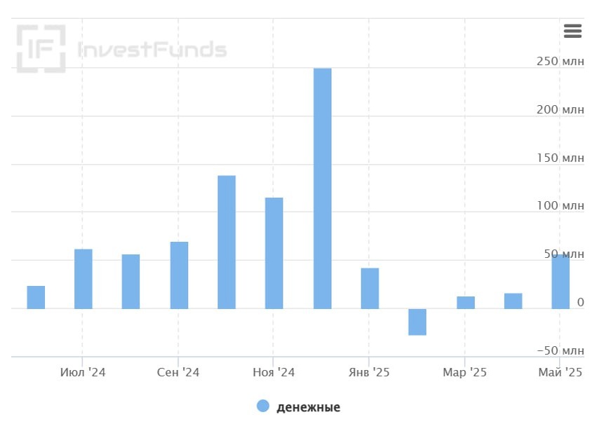 - Оттоки денег из фондов акций.