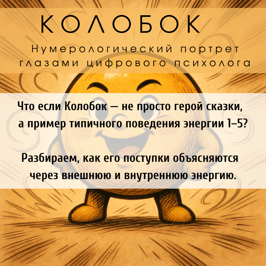 Он катился по лесу, пел о себе, уходил от всех — и был уверен, что всё под контролем. Но именно эта уверенность и стала ловушкой. Если взглянуть на Колобка через призму цифровой психологии, его поступки обретают смысл. Снаружи — энергия 1: лидер, который действует, не спрашивая. Внутри — энергия 5: бунтарь, не терпящий границ. Такой союз создаёт характер, который не ждёт одобрения, не принимает советы и идёт туда, где не всегда безопасно. Он не злой, не глупый. Он просто не научился слышать. Только говорить. Только идти. Только быть первым. 🧩 Этот сказочный герой оказался живым примером того, как энергия личности управляет выбором — даже в лесу, даже в сказке. ✨ А что если так же разложить и твою историю? Без оценок, без шаблонов — через числа, которые покажут, где твоя сила, а где ты снова и снова наступаешь на ту же петлю. Создаю: 🔹 Тезисный гайд по данности — краткое и точное описание твоей личной формулы 🔹 Подробный гайд личности — разбор энергии, задач, ошибок и точек ро