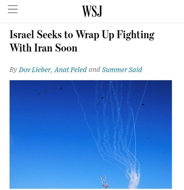 🇮🇱 Израиль хочет завершить конфликт США попросили арабских чиновников сообщить Ирану, что Израиль намерен скоро закончить противостояние. Однако Тегеран пока не готов отступить, считая необходимым ответить на удар.