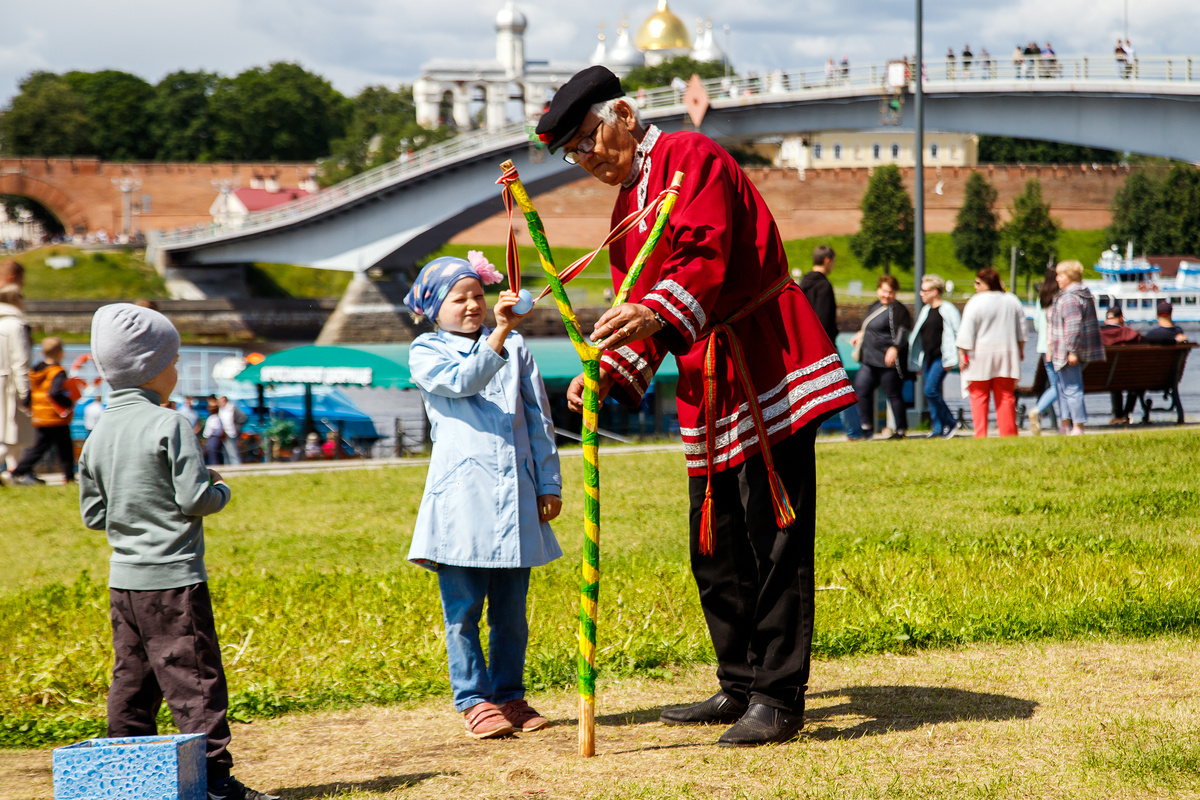 просто так, а с закрытыми глазами. А пришедшие на праздник новгородцы