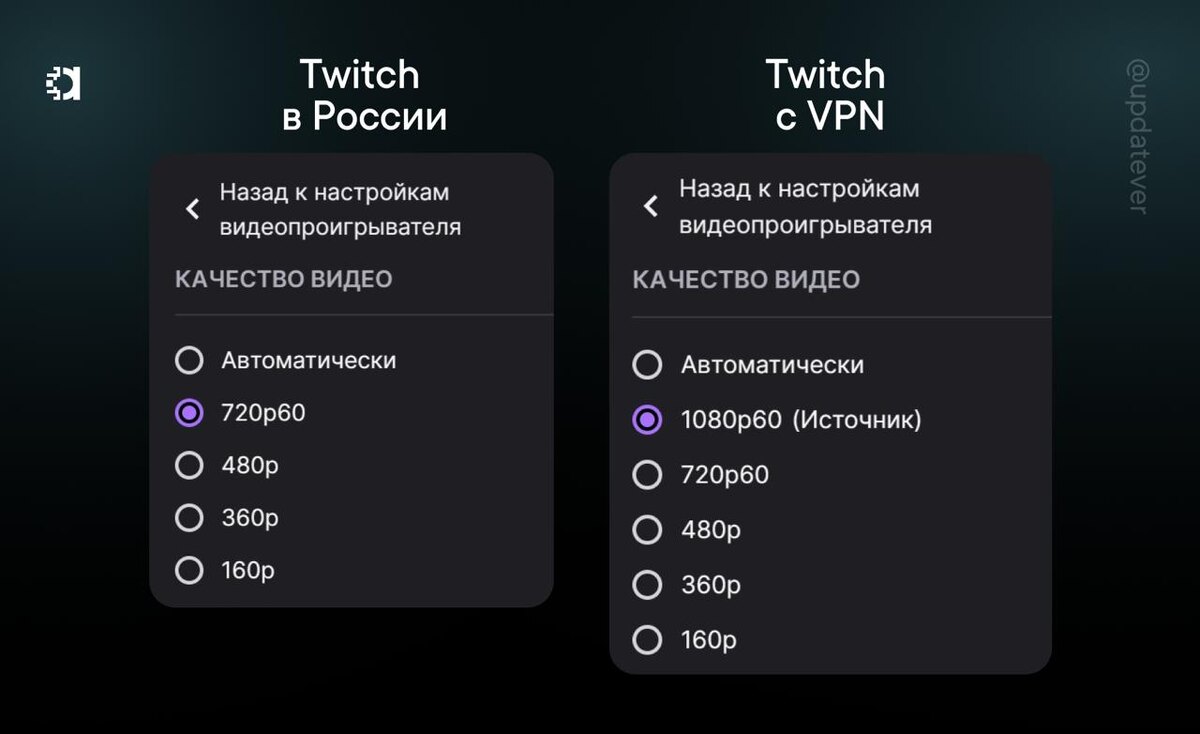 πΠΠΎΠ·Π²ΡΠ°ΡΠ°Π΅ΠΌΡΡ ΠΊ ΠΌΡΠ»Ρ Twitch ΠΎΠ³ΡΠ°Π½ΠΈΡΠΈΠ» ΡΠΎΡΡΠΈΠΉΡΠΊΠΈΠΌ ΠΏΠΎΠ»ΡΠ·ΠΎΠ²Π°ΡΠ΅Π»ΡΠΌ Π²ΠΎΠ·ΠΌΠΎΠΆΠ½ΠΎΡΡΡ ΠΏΡΠΎΡΠΌΠΎΡΡΠ° ΡΡΡΠΈΠΌΠΎΠ² Π² ΡΠ°Π·ΡΠ΅ΡΠ΅Π½ΠΈΠΈ, Π²ΡΡΠ΅ 720Ρ. ΠΡΠΈ ΠΈΡΠΏΠΎΠ»ΡΠ·ΠΎΠ²Π°Π½ΠΈΠΈ VPN, ΠΏΠΎΠ²ΡΡΠ΅Π½Π½ΠΎΠ΅ ΠΊΠ°ΡΠ΅ΡΡΠ²ΠΎ Π²ΠΎΠ·Π²ΡΠ°ΡΠ°Π΅ΡΡΡ. ΠΠ΅ΠΊΠΎΡΠΎΡΡΠΌ ΡΡΡΠΈΠΌΠ΅ΡΠ°ΠΌ ΠΏΠΎΠΊΠ° ΠΊΠ°ΠΊ-ΡΠΎ Π΅ΡΠ΅ ΡΠ΄Π°Π΅ΡΡΡ ΡΡΡΠΈΠΌΠΈΡΡ Π² ΠΏΠΎΠ²ΡΡΠ΅Π½Π½ΠΎΠΌ ΠΊΠ°ΡΠ΅ΡΡΠ²Π΅. Π‘Π΅ΡΠ²ΠΈΡ ΠΏΠΎΠΊΠ° Π½Π΅ Π΄Π°Π²Π°Π» ΠΎΡΠΈΡΠΈΠ°Π»ΡΠ½ΡΡ