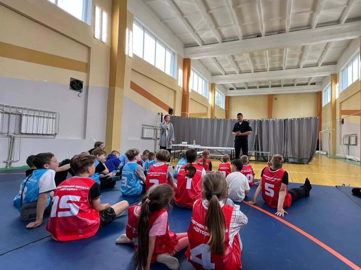 Сотрудники Госавтоинспекции провели профилактическую беседу с воспитанниками посещающими спортивный летний оздоровительный лагерь МБУДО спортивная школа «Шторм» пгт.Янтарный