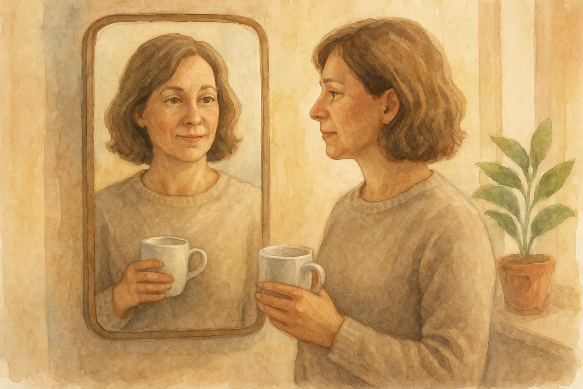 Зеркало — это не судья. Это инструмент. Вместо «плохо выгляжу» попробуйте: «Я устала, это видно. Может, мне отдохнуть?» Или: «Сегодня так, и это нормально. Завтра будет иначе».