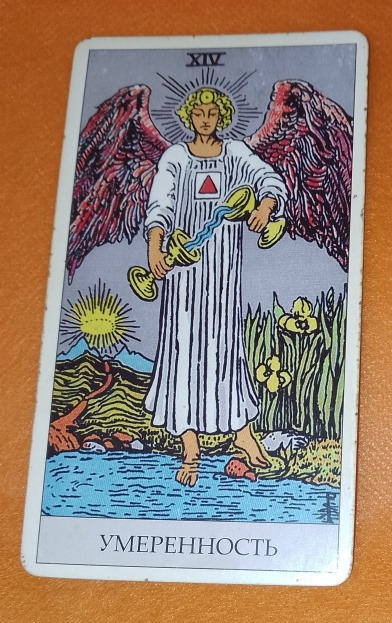 📝 "Обучение Таро". Урок №30 🔮🃏 ограничение, баланс, равновесие, компромисс, дружба, доверие, спокойствие, гармония, размеренная работа, гармоничные отношения. Благословение, творческая сила. Умеренность говорит о том, что в Вашей жизни наступает период благоденствия. Она обещает душевное спокойствие, удовлетворëнность во всех сферах жизни. Вы прошли большой путь и теперь наконец-то можете успокоиться и позволить себе размеренную, счастливую жизнь. “Умеренность” - это карта красоты, радости, тишины и гармонии. Это мощный образ света и восстановления. Она считается счастливым предзнаменованием. Карта несёт смягчение разногласий и снижение напряжëнности, хотя указывает, что человек проходит какие-то испытания. Обещает, что ситуация успокоится и прояснится. существуют обстоятельства, которые мешают развиваться ситуации, так, как Вы хотите. не стоит форсировать события. необходимо найти баланс в работе. Если подходить к работе спокойно, с толком, с растановкой, то всё получит