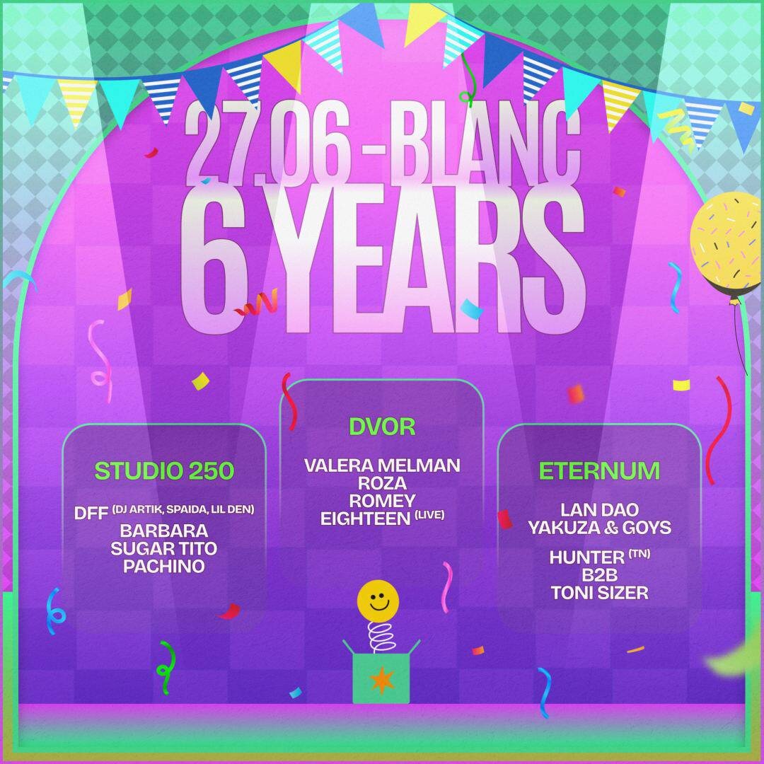 27 июня | BLANC 6 YEARS Перескочили на пару недель вперёд — готовы встретить долгожданный праздник с калейдоскопом развлечений: танцы на свежем воздухе, маркет и приятные сюрпризы. Начинаем днём и продолжаем до утра DVOR - Valera Melman - Roza - Romey - EIGHTEEN (live) STUDIO 250 - DFF (DJ ARTIK, SPAIDA, LIL DEN) - BARBARA - Sugar Tito - Pachino ETERNUM - Lan Dao - Yakuza & Goys - HUNTER (TN) b2b Toni Sizer 🎫 Регистрация и билеты на праздник — по ссылке FC / DC 21+ 📆 27 июня, с 16:00 📍 Blanc, Москва, Хохловский пер., 7/9