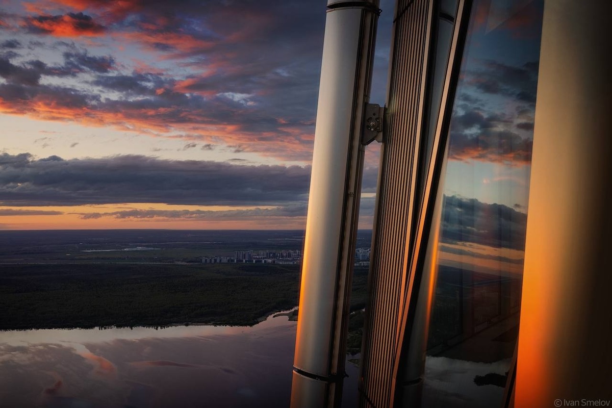 Известный петербургский фотограф Иван Смелов запечатлел город в переменчивом вечернем свете с высоты обзорной площадки Лахта Центра. Иван поделился с нами впечатлениями от съемки: