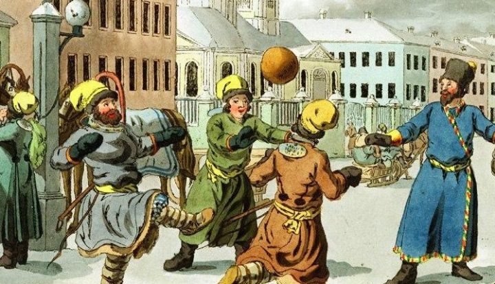 На реку выходили «две толпы мужиков» (всего человек 60—80) и определяли места, до которых «гнать мяч». Мяч величиной с большой арбуз брошен, и тут начинается «бойня» — «все бросаются на него и начинают пихать ногами». Когда мяч от нерасторопного игрока уходит, обязательно находится какой-нибудь удалец, который мяч подхватывает и бросается с ним к цели. Противники «тузят» друг друга кулаками. Слышатся крики и брань, звонкие оплеухи, глухие удары ног. Пар от тяжело переводящих дыхание игроков «валит столбом». На снегу остается кровь. По сути, жесткая борьба за мяч становилась альтернативой кулачному бою — еще одной традиционной русской забаве Масленичной недели.