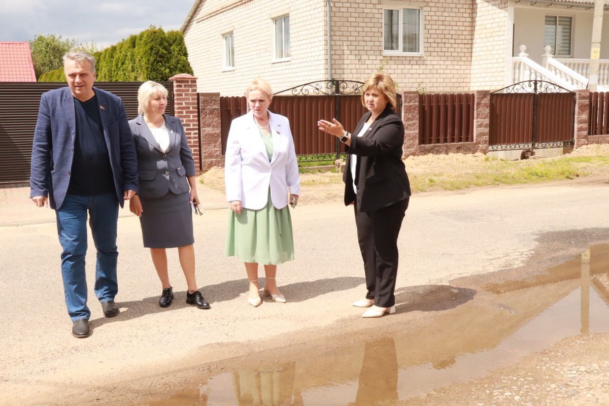 ⚡Сегодня во время личного приема граждан к сенатору Елене Журавлёвой обратилась жительница деревни Рудавка с проблемным вопросом: по улице Янки Купалы, где проживает женщина, стоит 🌧️дождевая лужа, по мнению гражданки, из-за плохого качества водоотведения либо неровностей дорожного покрытия. Сразу же после окончания личного приема и "прямой телефонной линии" все заинтересованные выехали по указанному адресу. ‼️Вопросы взяты на контроль