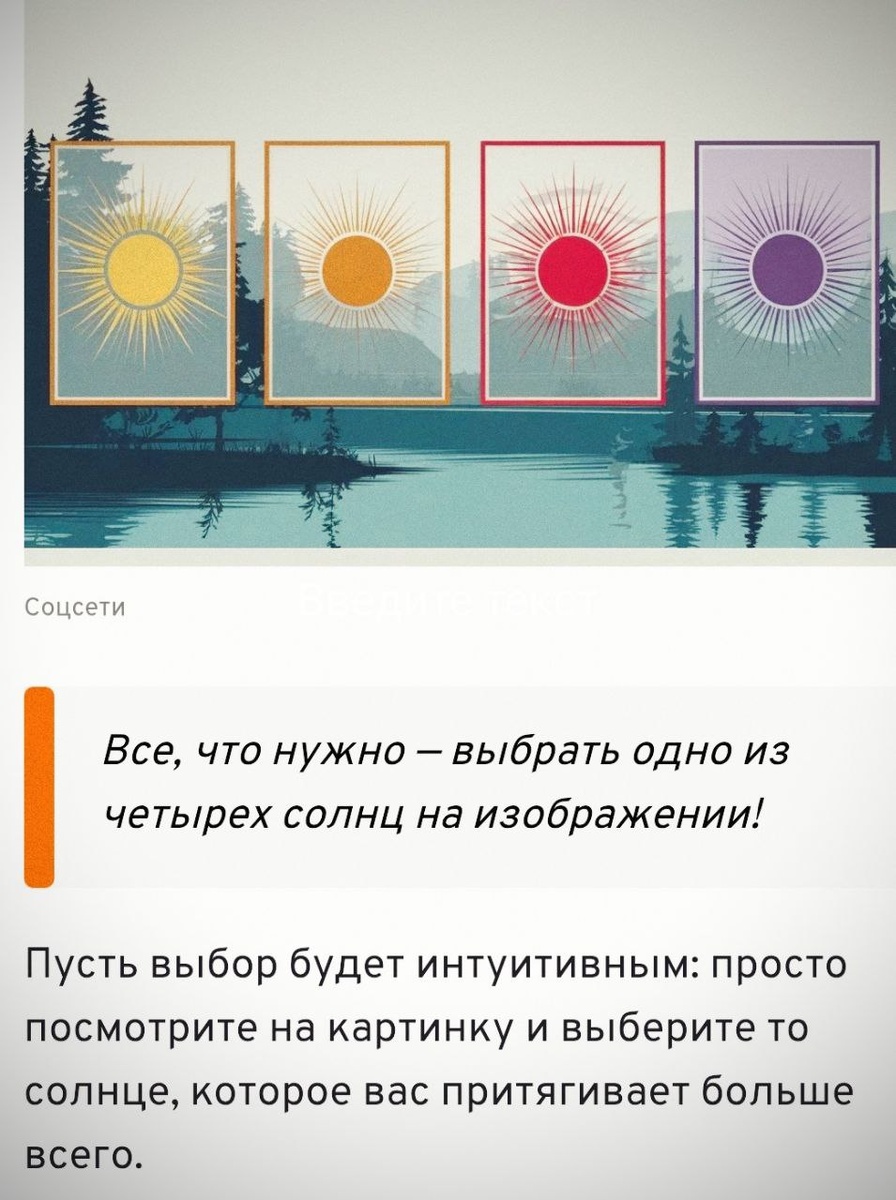 Поиграем?))) Выберите солнце и напишите ответ в комментариях ⬇️⬇️⬇️⬇️ Ваш выбор расскажет, за что вас ценят другие — и какую роль вы играете в их жизни. Иногда даже простая иллюстрация может стать зеркалом, в котором отражается наша внутренняя суть. Ответы на тест будут в комментариях.