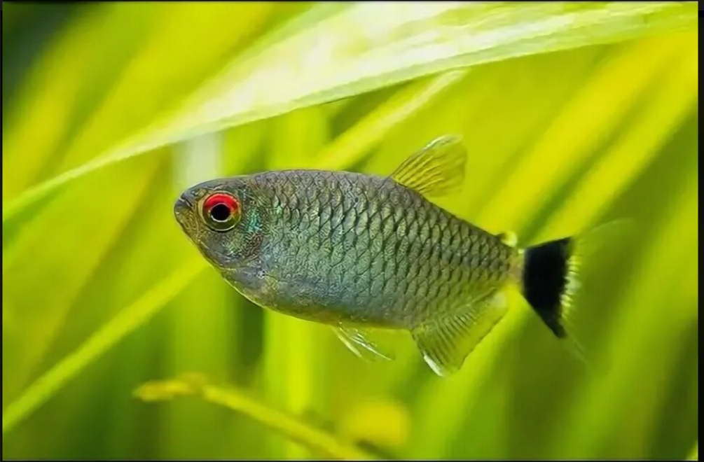 В аквариумном мире сочетание «дьявольская рыбка» и «идеальна для новичка» звучит как парадокс. Но именно так можно описать красноглазую тетру (Moenkhausia sanctaefilomenae). Эта неприхотливая красавица с пронзительным взглядом десятилетиями не сходит с пьедестала лучших рыб для начинающих. Давайте разберёмся, в чём её дьявольская суть и ангельская покладистость. Внешность: Серебро, чёрный флаг и огненные глаза Красноглазая тетра — рыбка с выразительной, запоминающейся внешностью. Её тело высокое, серебристое, с лёгким золотистым отливом на спине. Хвостовой плавник украшен контрастными чёрно-белыми полосами, напоминающими флаг или шахматную клетку (из-за чего её иногда называют «тетра-флаг»). Но главная «фишка» — это её глаза. Верхняя половина радужной оболочки окрашена в яркий, светящийся кроваво-красный или оранжево-красный цвет. Именно этот гипнотический, «недобрый» взгляд и подарил ей прозвища «красноглазая» и «дьявольская» тетра. Взрослый размер — 6-7 см. За что её прозвали «дья