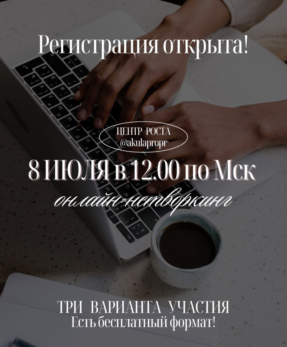 ЭНЕРГИЯ ДЕЛОВЫХ ЗНАКОМСТВ ВОЗВРАЩАЕТСЯ! 🗓 8 июля в 12:00 Мск — онлайн-нетворкинг в прямом эфире @akulapropr Помните эти тёплые эфиры, где рождались коллаборации, а проекты спикеров находили новых подписчиков, клиентов и единомышленников!? Я провела 50 таких встреч с 100+ спикерами, и 17 из них возвращались снова и снова — потому что здесь чувствовали поддержку и искренний интерес! Перечитываю отзывы 👉 пролистайте и вы — там так душевно и по делу❤️! 🎤 ОТКРЫВАЮ РЕГИСТРАЦИЮ на онлайн-НЕТВОРКИНГ 8 июля, 12:00 Мск Три формата участия, есть и БЕСПЛАТНЫЙ: ✅ СПИКЕР (всего 4 места, 1000 руб., принимаются решики💰) Для экспертов, готовых усилить позиционирование и получить клиентов: — 15 минут выступления в прямом эфире — 30-минутную консультацию со мной — разберём вашу воронку, продукты, подачу — Анонс с фото — Возможность записать видеокружок в чате «Среды решений» — Упоминание в записи эфира (она останется в канале навсегда) 👉 СТАТЬ СПИКЕРОМ 🆓 ВЫСТУПАЮЩИЙ УЧАСТНИК (всего 10 мест, бе