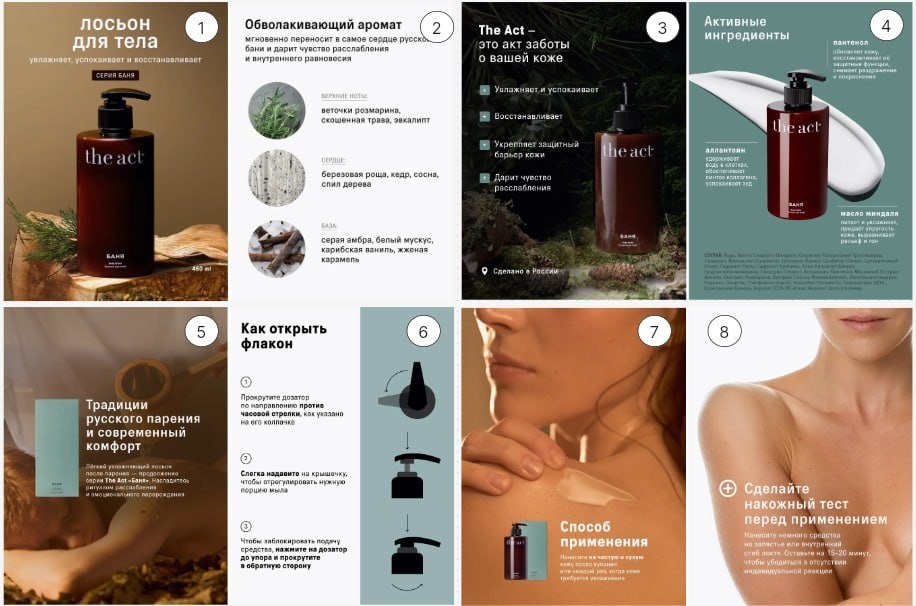 Ваш покупатель — да. Если в ней нет ритма. Когда я проходила курс по нейропирайтингу, нас учили чередовать длинные предложения и короткие. Потому что на втором длинном предложении уже хочется отключиться. А одни короткие фразы создают слишком много напряжения. Пример от классика (Блок): Ночь, улица, фонарь, аптека, Бессмысленный и тусклый свет. Живи еще хоть четверть века - Все будет так. Исхода нет. В общем, чтобы понять идеальный ритм текста, надо попробовать прочитать это вслух. На точке - берем дыхание. Не хватает дыхания - текст читать тяжело. Казалось бы, причем здесь карточки товаров? Удивительно, но в карточках работает то же самое. Вижу такую же схему в топовых карточках в конкурентных нишах. Абзац в тексте = слайд в карточке. Как нельзя в одном абзаце давать несколько мыслей, так и на одном слайде им не место. Хорошо, если абзац текста читаем по диагонали. Так и в слайде. Можно даже считать слайд похожим на предложение. И дл