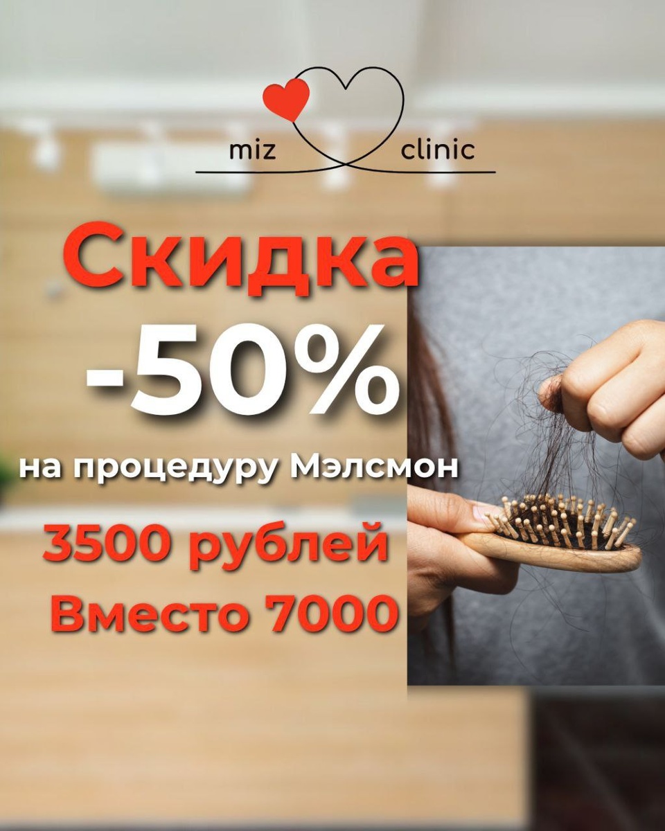 💇♀️ Волосы снова «бунтуют»? То пачкаются за день, то висят безжизненными прядями, а на расчёске остаётся всё больше волос? Мы часто хватаемся за маски, дорогущие шампуни, домашние рецепты… но что, если проблема — глубже, а волосы просто подают SOS-сигналы? ⚠️ Волосы — зеркало здоровья. Если им чего-то не хватает — это сбой в организме. И пока мы сражаемся с «баночками» на полке, настоящую помощь может оказать врач-трихолог. ✨ Спасение для ваших волос — японский плацентарный препарат Мэлсмон В Мизклиник мы используем Мэлсмон для эффективной мезотерапии при выпадении, ослаблении и сухости волос. Он улучшает питание фолликулов, ускоряет рост новых волос, придаёт им плотность и блеск. 🔥 И СЕЙЧАС — СКИДКА 50% на Мэлсмон! 🔥 Это уникальный шанс восстановить волосы по специальной цене. 🔬 Что делает Мэлсмон? ✅ Стимулирует рост новых волос ✅ Укрепляет волосяной стержень ✅ Глубоко увлажняет кожу головы ✅ Снижает выпадение и придаёт объем 💡 Не ждите, пока ситуация ухудшится — приходите