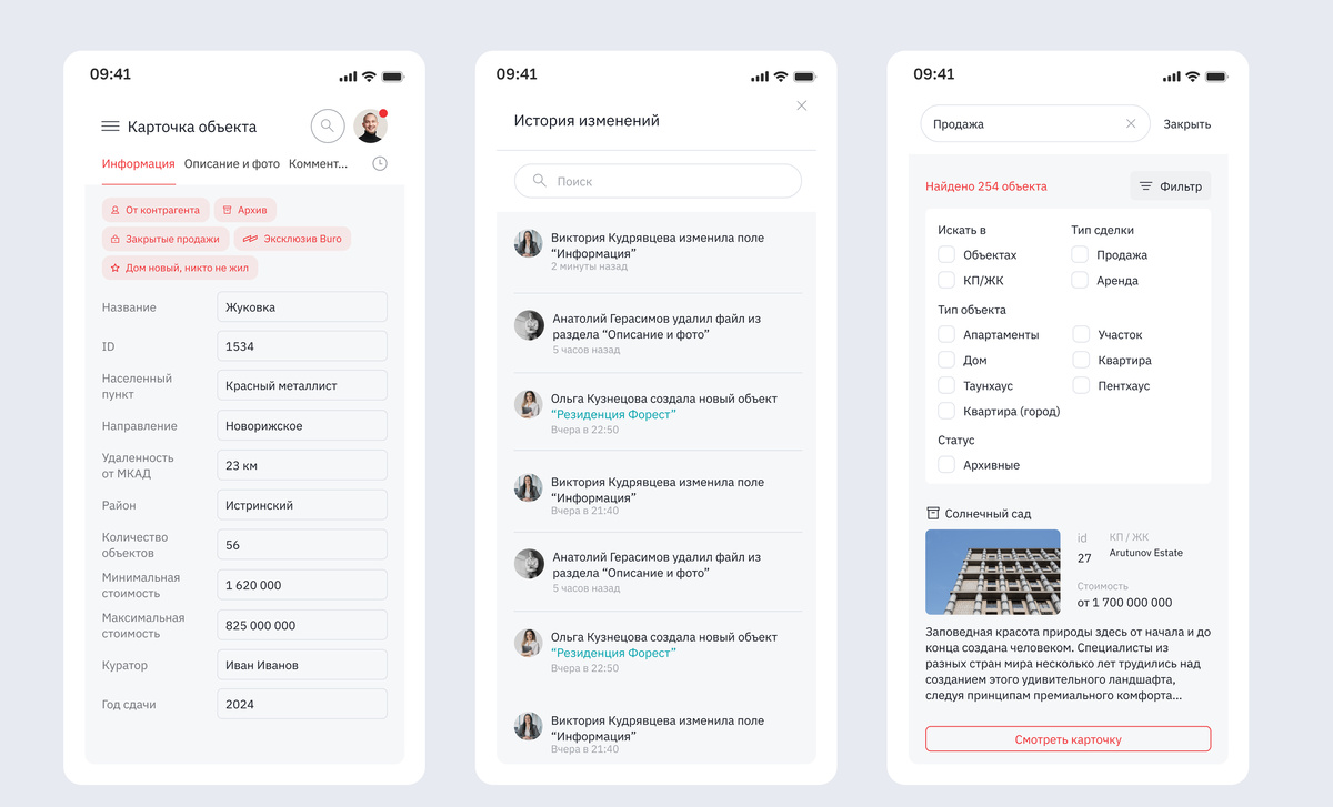 Разработать удобный интерфейс, в котором брокеры максимально быстро смогут решить свои задачи на любом устройстве. Узнали, что важно для брокеров и задизайнили удобные таблицы с объектами. Интерфейс системы интуитивно понятен — избавились от выпадающих списков, чтобы все функции были на виду, а новые сотрудники тратили меньше времени на обучение. Чтобы не заблудиться среди сотен объектов, сотрудники Бюро используют поиск. Для удобства добавили в интерфейс миниатюры фотографий, показали цены и разделили результаты по категориям. Внутри карточек исчерпывающая информация об объектах. Подробное описание, фотографии и цену в один клик можно выгрузить в виде фирменной презентации, которая автоматически генерируется на основе информации из карточки.