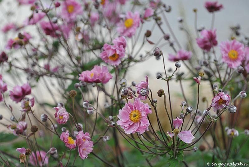 От весенних и летних ветрениц плавно переходим к осенним. Знаменитый английский садовник Кристофер Ллойд рассказал о любимых сортах и путанице в названиях. Начиная с середины лета, на первый план выходят японские анемоны, которые заслуженно считаются одними из самых популярных позднецветущих зимостойких многолетников. У них деревянистое, но ползучее корневище. Обычно их размножают черенками, полученными из тонких годовалых корней. Черенки выращивают в горшках, и после пересадки в открытый грунт им потребуется год, чтобы прижиться. После этого их уже не удержать. Иногда в адрес наиболее активно разрастающихся многолетников звучит критика: якобы их быстрый рост препятствует их использованию в качестве бордюрных растений. Возможно, так оно и есть, но во многих садах есть места, где заросли красивого многолетника - это как раз то, что требуется. Осенние анемоны хороши и во влажной тени, и на солнце. Большинство из них цветут в течение двух с половиной месяцев, что превышает сроки цветения