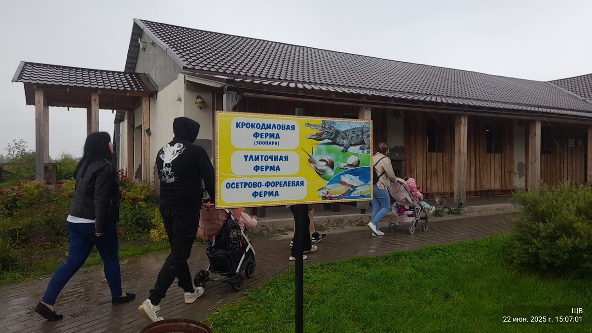 Пошли, закупили билеты. Если я правильно понимаю, то по всему зоопарку можно ходить бесплатно. А вот в помещение с крокодилами уже плата. И там еще какие то осетры,как я и понимаю, это отдельно, и отдельно ферма улиток.
