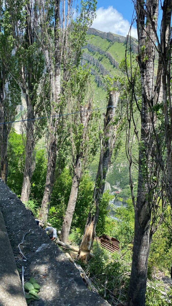 В Гунибе вырубают деревья (красивейшие тополя). Глава села дал разрешение на каком основании? Прошу природоохранную прокуратуру принять меры! ЧП Дагестан