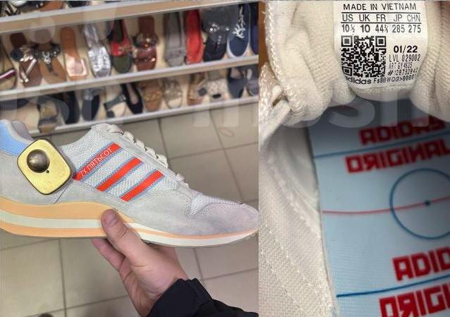 Отличительные особенности кроссовок — хоккейный принт на стельке и две полоски вместо трёх. Сергей проверил подлинность модели через QR-код и связался с представителями Adidas в Германии, которые подтвердили, что эти кроссовки официально не продавались.