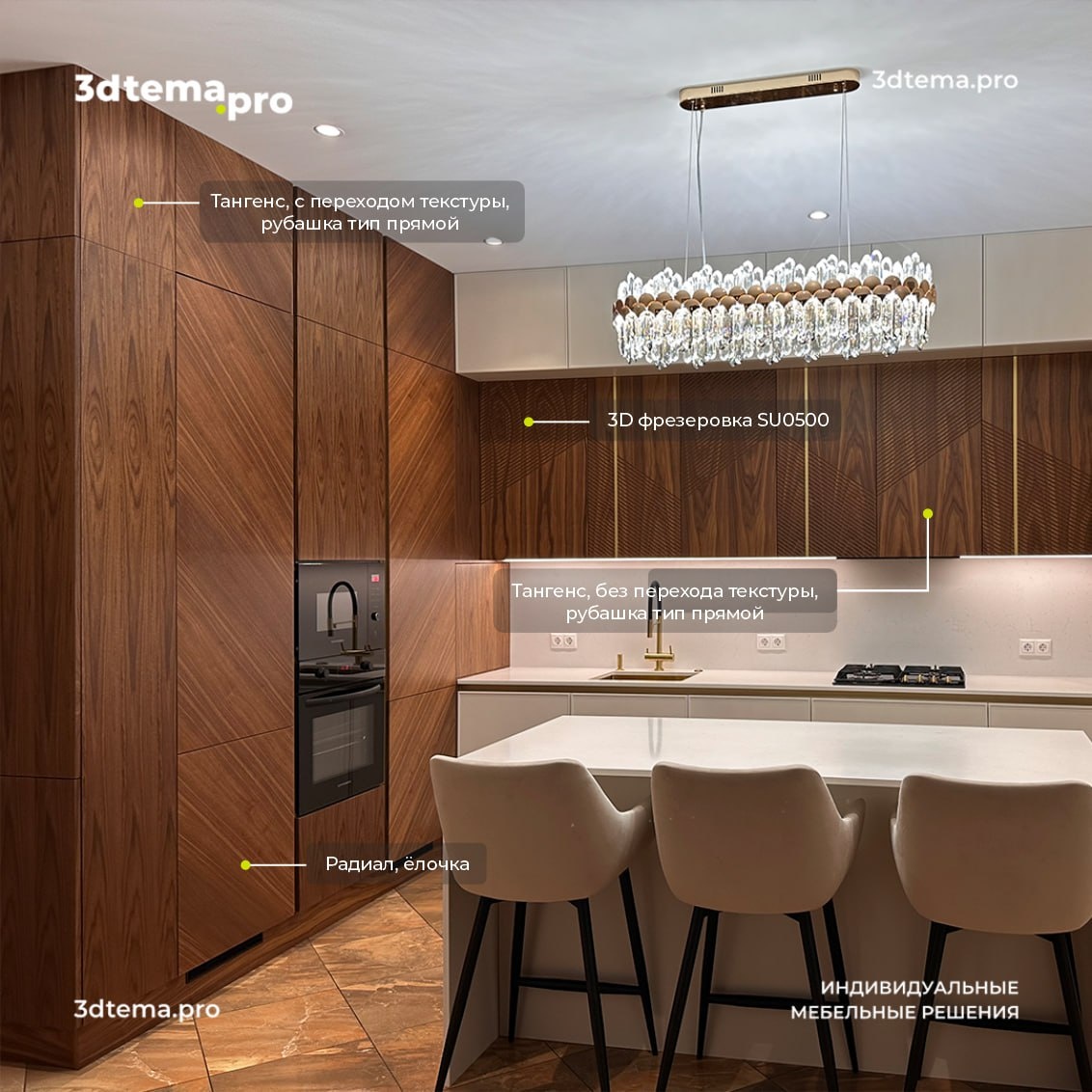 Когда роскошь встретилась с технологиями 🔥 Это не просто кухня, а произведение искусства, созданное нашими мастерами. Каждая деталь продумана до мелочей: ✅ Американский орех — шпон с благородной текстурой в разных комбинациях; ✅ Закрытые поры в матовом лаке — бархатистая поверхность, которая приятна на ощупь и устойчива к влаге; ✅ Латунные вставки — золотистые акценты, которые добавляют интерьеру богатый блеск и стиль ретро-фьюжн; ✅ 3D-фрезеровка — сложная обработка, превращающая фасады в объёмные шедевры. ✨ Почему клиенты выбирают нас? → Индивидуальный дизайн — ваша кухня будет уникальной; → Премиальные материалы — только натуральный шпон и долговечная отделка; → Ювелирная точность — никаких компромиссов в деталях. ☺️ Хотите такую же? Свяжитесь с нами! Cоздадим проект, который восхитит даже самого взыскательного гурмана интерьеров! 📱 Telegram 📱 WhatsApp 📱 Сайт: 3dtema.pro 📲 +7 495 278 08 44 ✉️ info@3dtema.ru